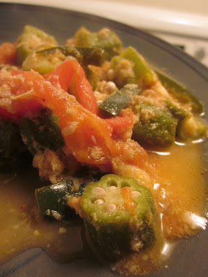 I learned this today: the name for okra sounds like 'gumbo' in several African dialects. For something to be called a gumbo, it should contain okra. Interesting.