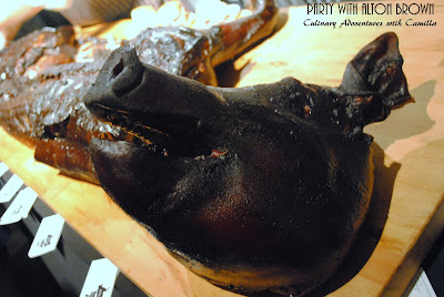 Chef John Fink of The Whole Beast in San Francisco had a whole pig, maybe two, because there were actually two heads on that table! "Winkler Mangalitsa Pig. Apple brined and 14-hour smoked over applewood. Served with apple-caraway slaw on a Hawaiian bun." Click to read more about the Winkler Mangalitsa pigs: here.