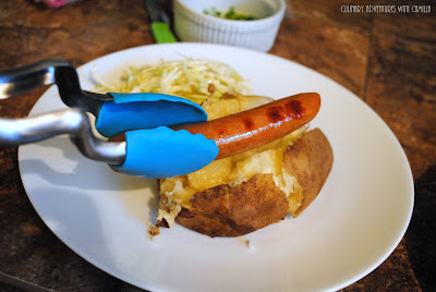 I had initially planned to make Puka Dogs because I love the story of their name and we love Kauai though we never did have Puka Dogs when we were in Poipu. However, after testing the recipe, we decided it was just too sweet - sweet rolls, sweet relish, and even sweet mustard. It was too much sweet for my crew. So, I changed directions and went with an Idaho Dog. Full disclosure, I saw a photo of an "Idaho Dog" on pinterest and decided to go for it; I did not, however, check with my family in Idaho to actually verify that they have these there. Whoops.