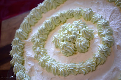 To decorate, I smoothed the white over the top and piped some green designs with a star tip.