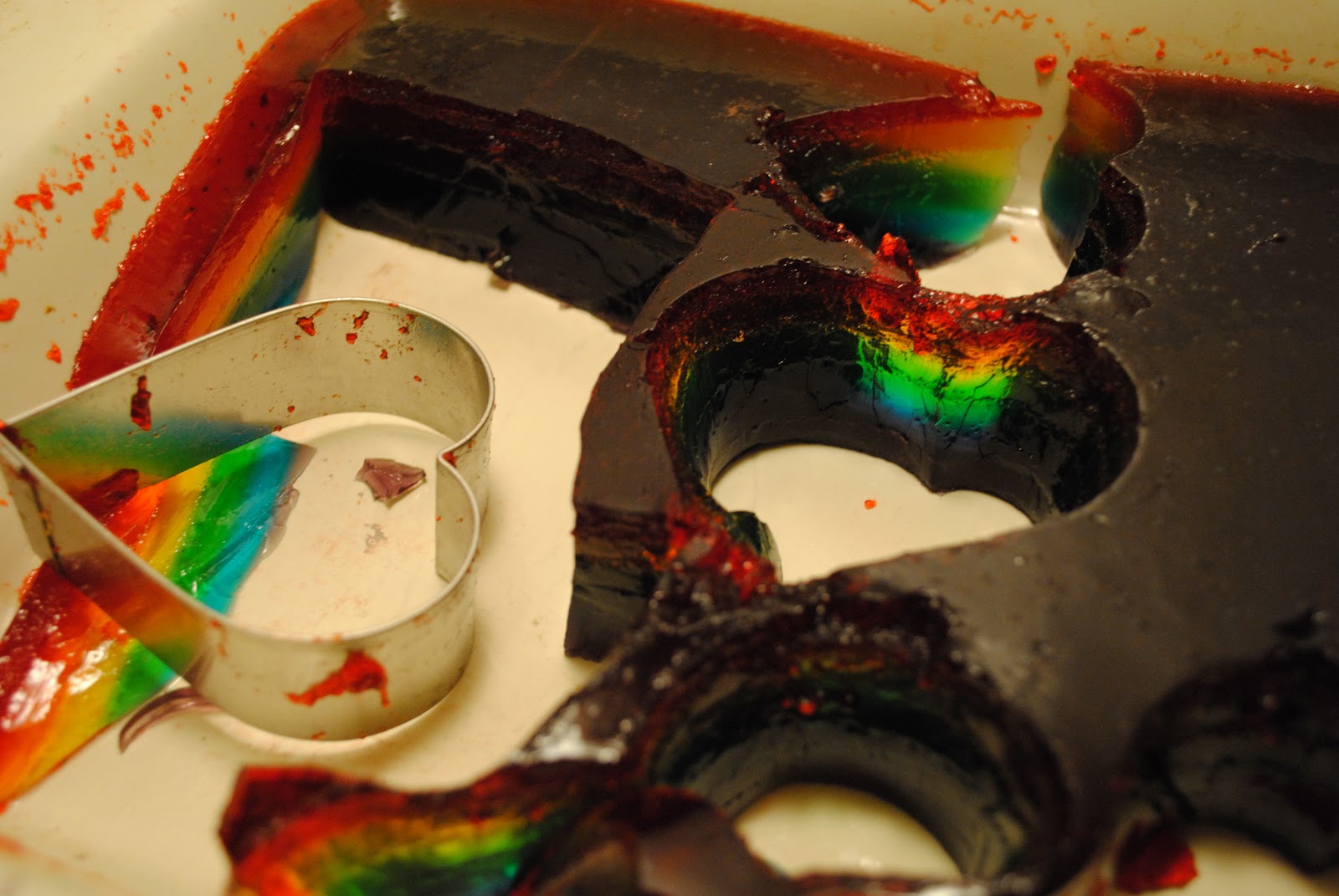 Prepare to laugh...I approached the first layer - purple - with trepidation. I tore into the package and poured the magic Jello powder into my mixing bowl while the water boiled. "It's white!" I hollered. "Why is it white?!?"