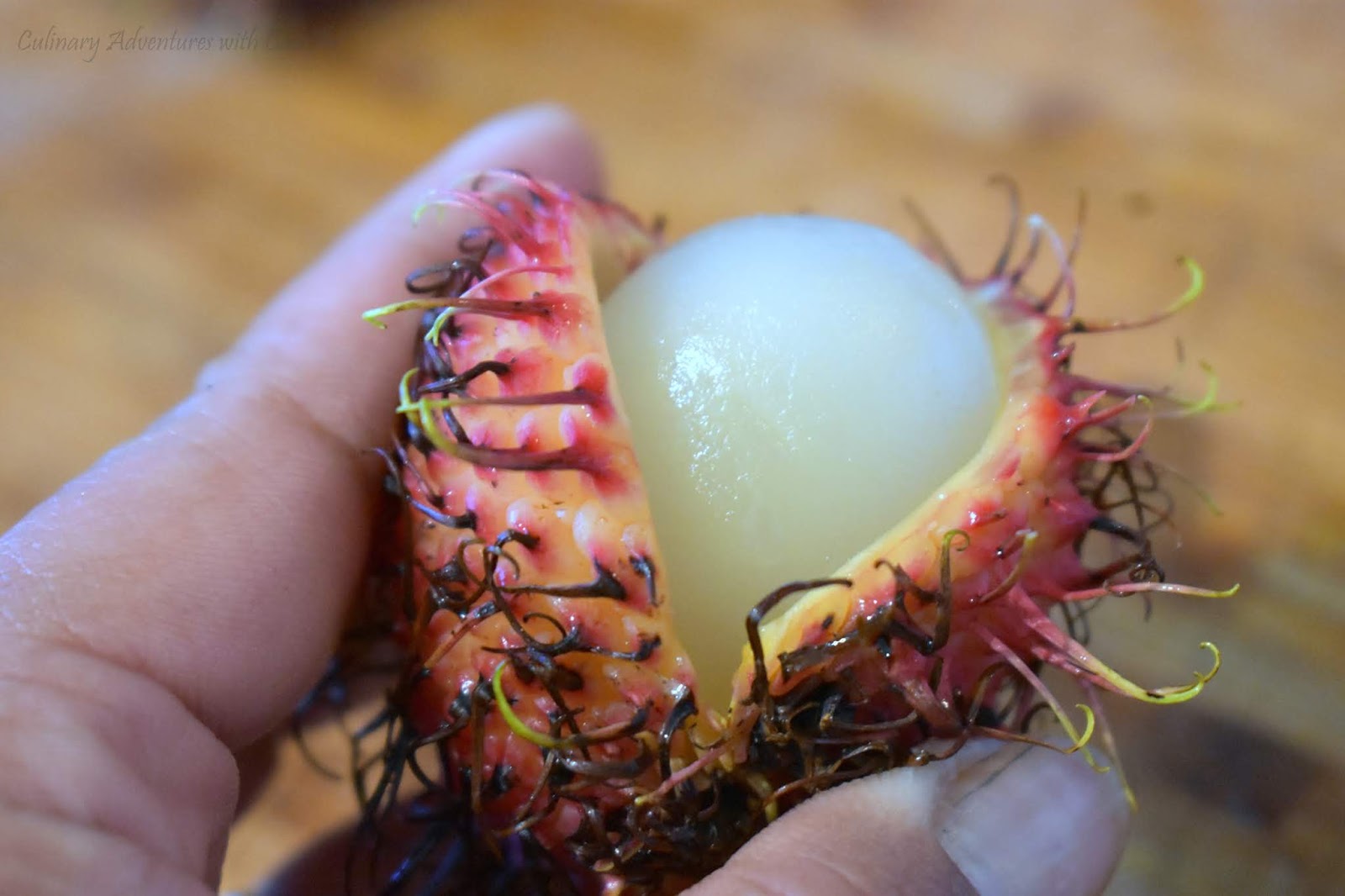 Closely related to the lychee and longan fruits, the Rambutan has wiry hairs protruding from its husk. In fact, my boys have always just called them 'the hairy lychees.' Okay, that's not totally accurate, but I always knew what they wanted. The fruit gets its name from the