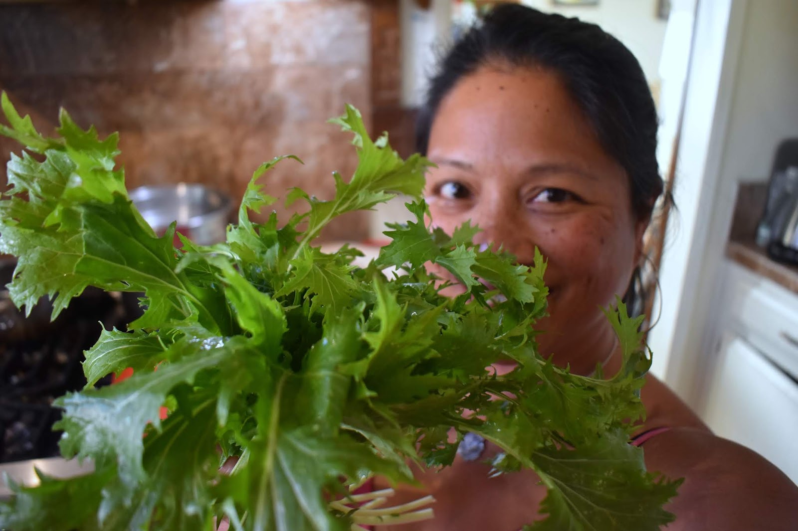 - 2 to 3 C organic mizuna greens, destemmed and roughly chopped