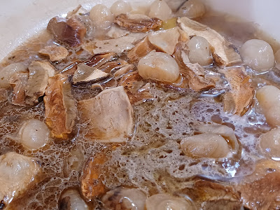 If you aren't so lucky to have a foraging friend, dried porcini works just as well. I add a dash of porcini powder to really make that distinctive umami flavor. Wineforest has some great products and I used the porcini polenta, dried porcini, and porcini powder for a triple boost of delicious porcini power!